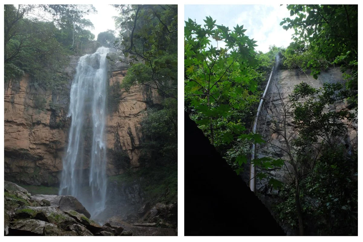 The Mantchewe waterfalls and the pipes forcing water to the turbine. Source: Serena Saligari