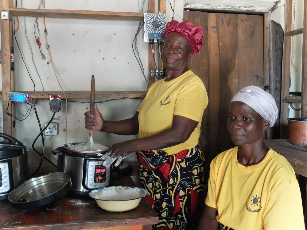Women from one of the Kachione shops in Lunzu area making Nsima using an electric pressure cooker. Source: Serena Saligari